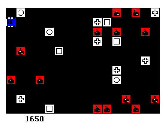 If you click and hold the joystick button as you travel, one box at your rear will be pulled along with you, and/or you can push any number of boxes ahead of you. But watch out! Sometimes a box will be revealed as a bomb!