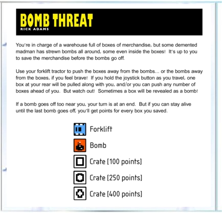 Bomb Threat was designed and programmed by Rick Adams, author of Tandy's Shanghai and Temple of ROM.