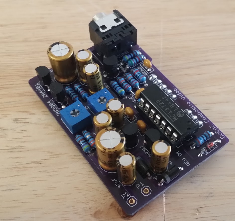This board fills the need for some decent (non RF modulator) video output options for the Motorola MC6847 for the Tandy Color Computer 2.