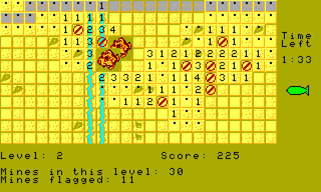 "Minecamp, The Next Mission" is a minesweeper style game with a twist.
